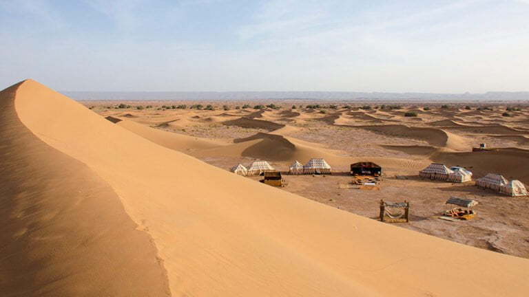 In the afternoon, you'll set out on a camel trek to reach a Berber desert camp nestled in the heart of the dunes. Here, you'll dine under the starlit desert sky and spend the night in traditional Berber tents.